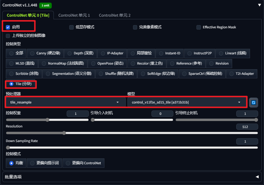 controlnet tile配置: