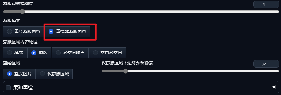选择重绘非蒙版内容: