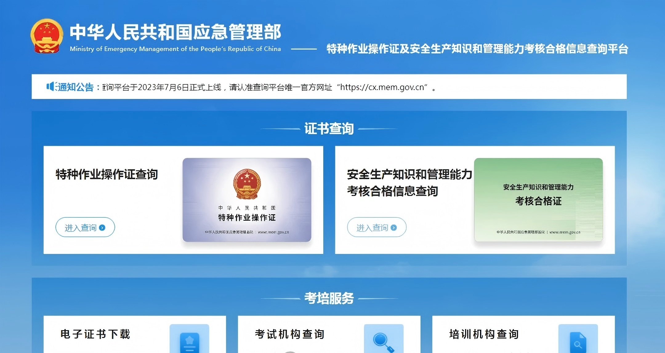 证书查询网址:http://cx.mem.gov.cn/